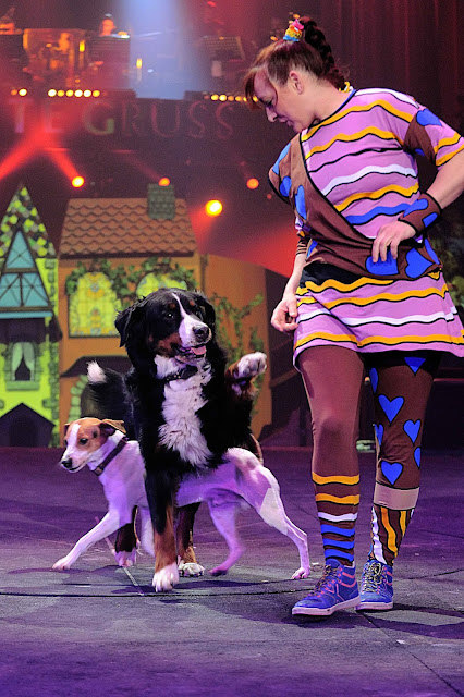 Rosi HOCHEGGER présente deux numéros dans les cirques où elle travaille : des chiens dressés et son Scout, cheval comique.